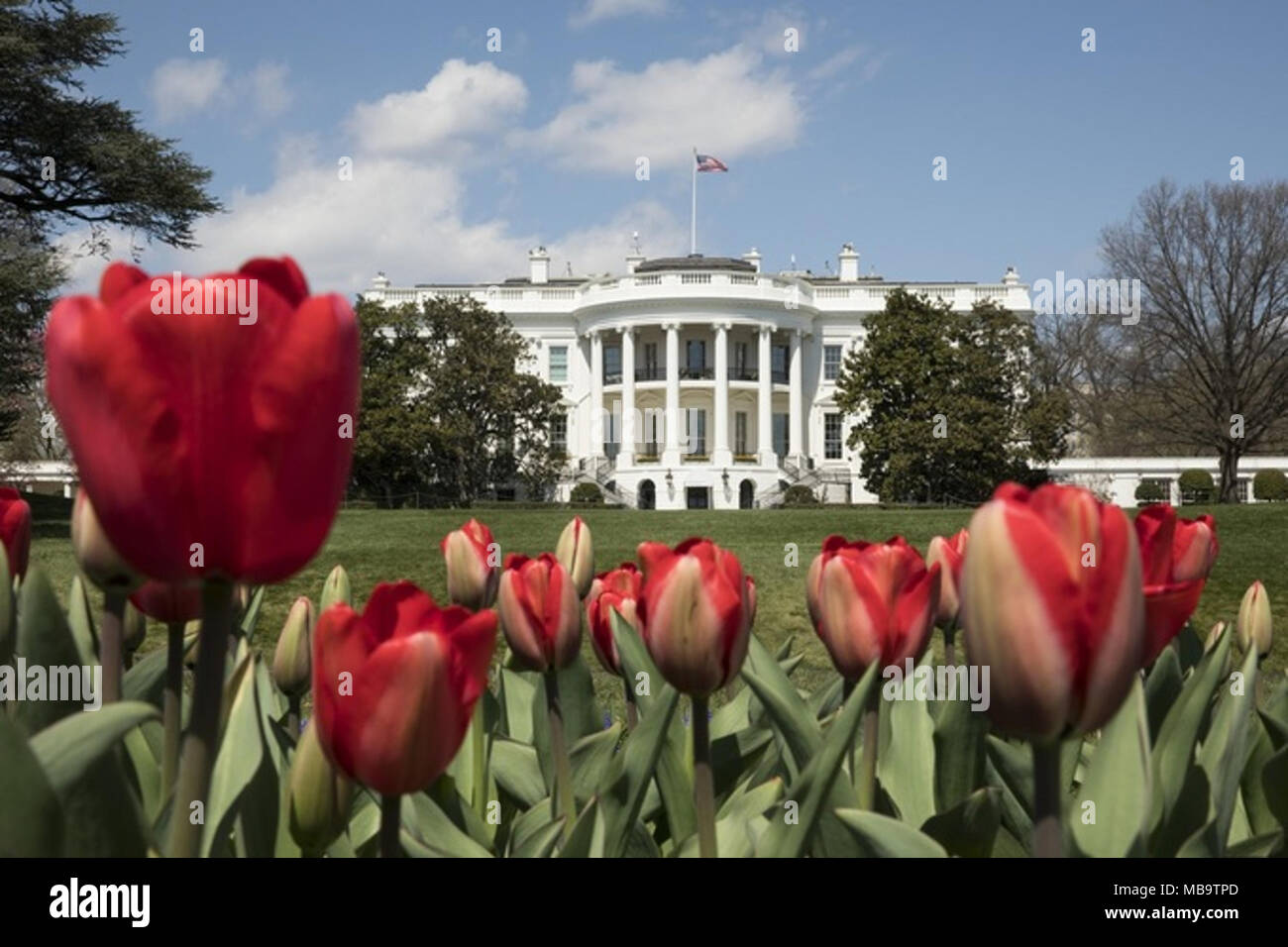 Washington Dc Week Of April 05 Blooming Red Tulips Are Seen In The Gardens Of The South Lawn Of The White House Thursday April 5 2018 In Washington D C The White